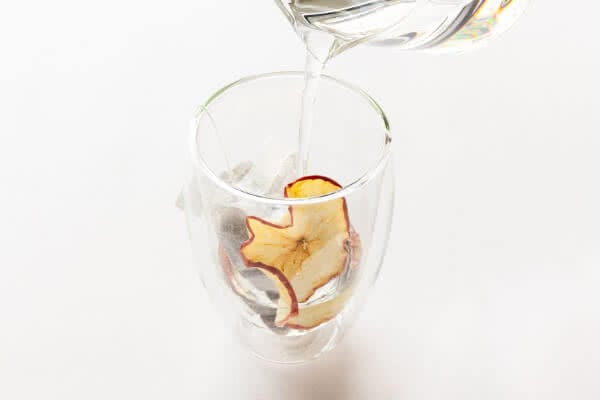 グラスにコーヒーバッグとドライフルーツを入れ、水を300ml注ぐ。
